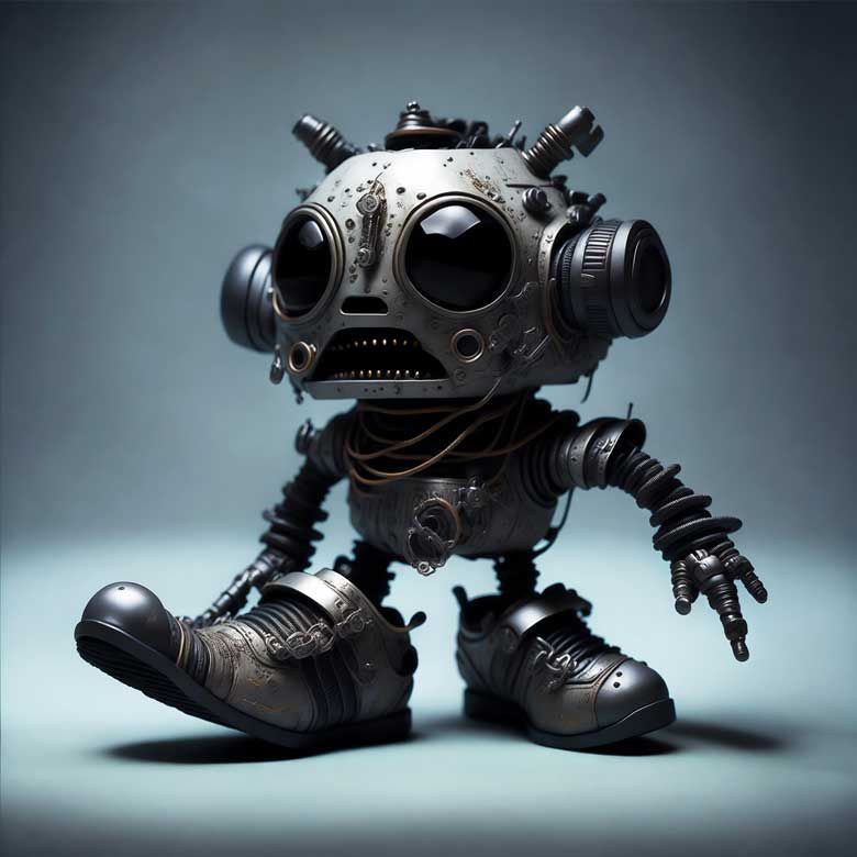 AssKick Robots are small peaceful helper robots that perform various tasks. They help where they can. But they are also resolute in the face of unfriendliness, bad behavior and intolerance. When they encounter such people, they can also show their teeth and, if necessary, give them a kick up the ass.