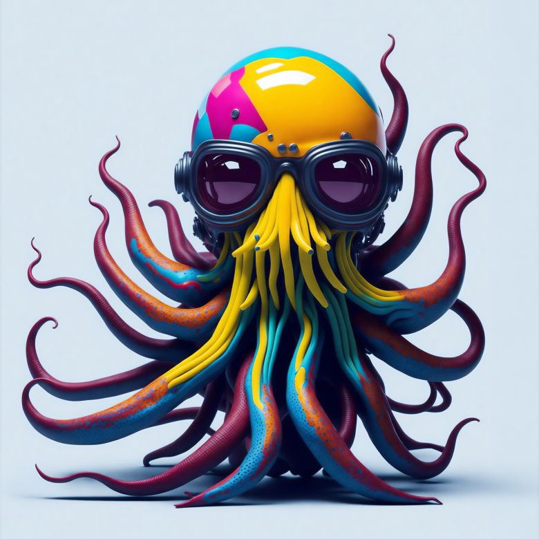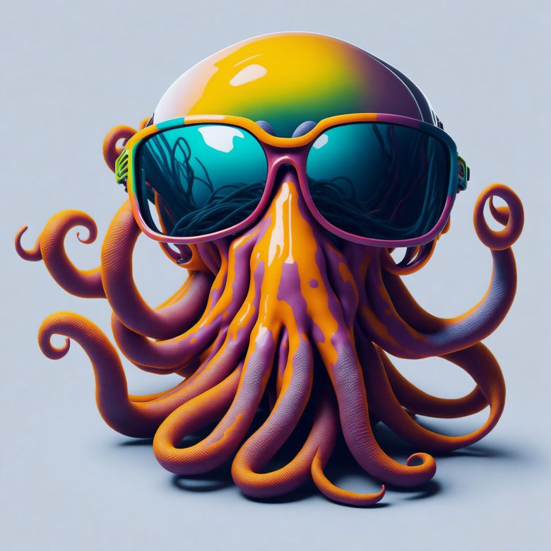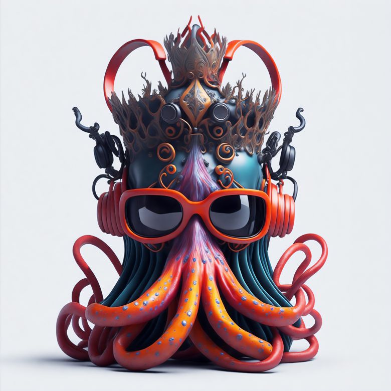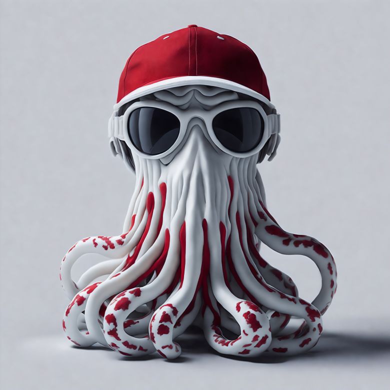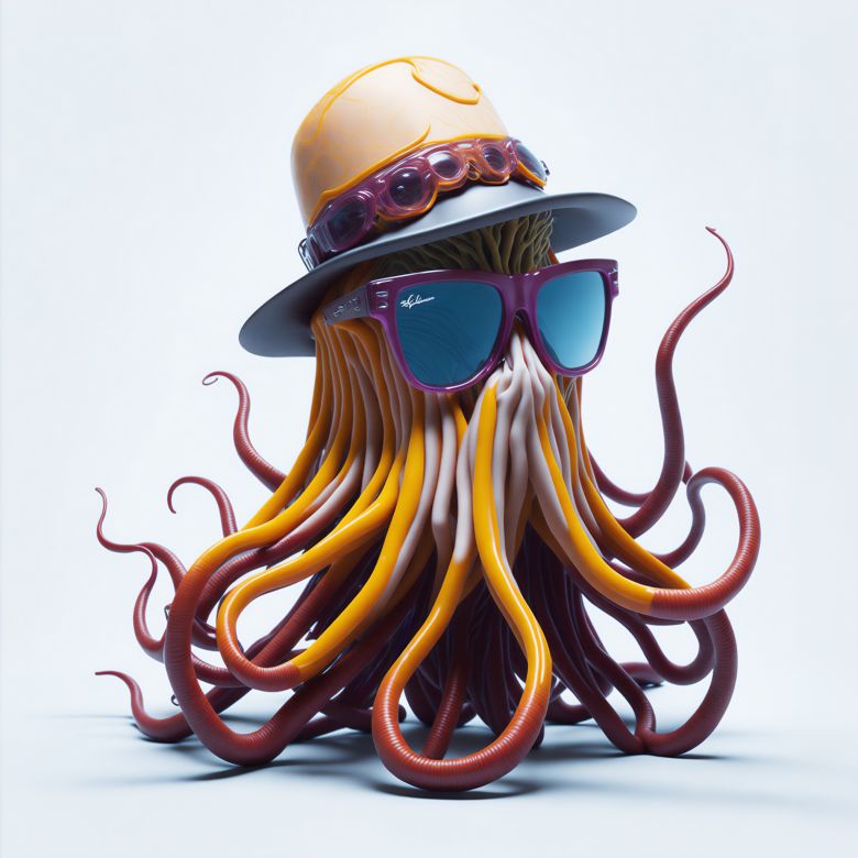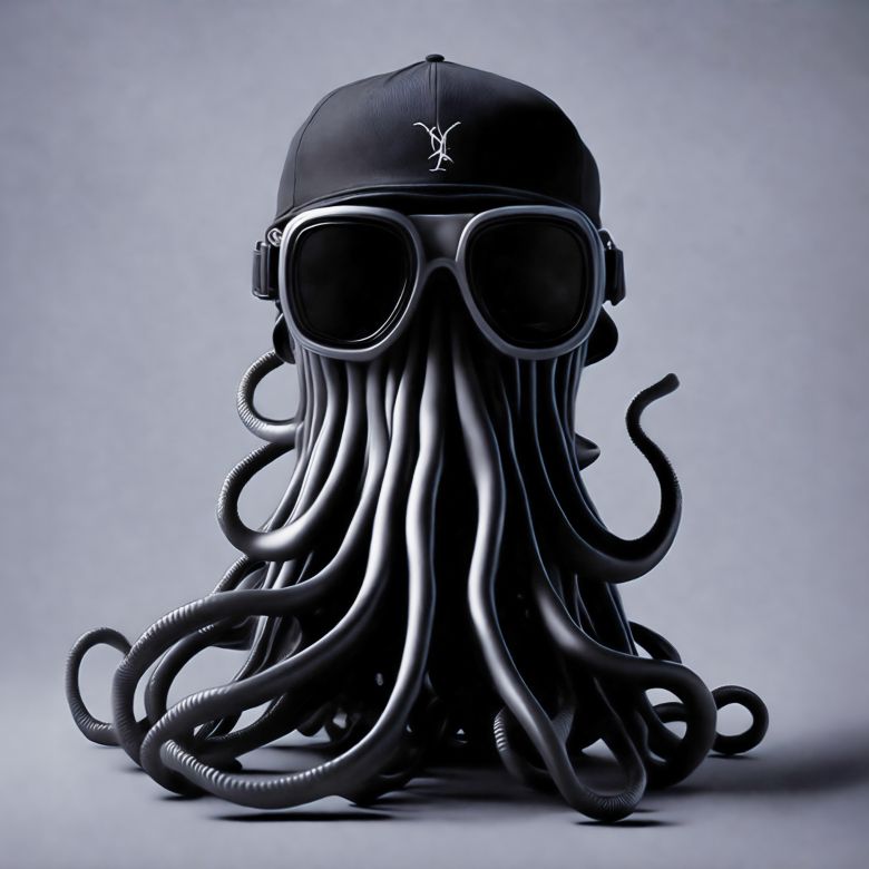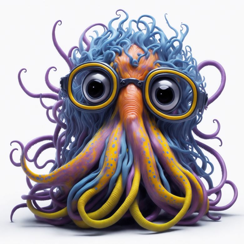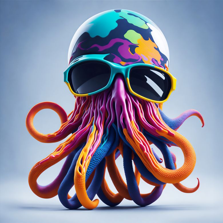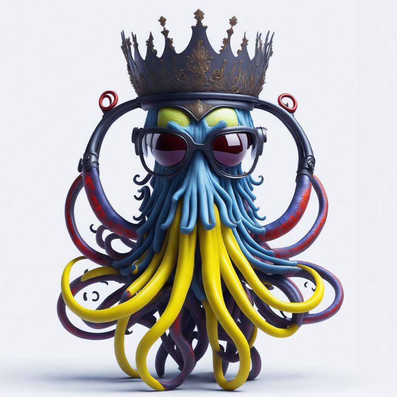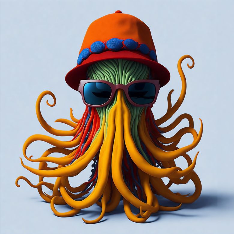 Crazy Octopussys are multicolored images of Octopusses wearing different glasses and headwear. Each has individual characteristics such as color, eyewear, headwear and some even wear headphones. Each Octopussy is unique.